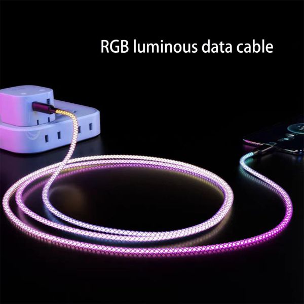 Cool LED RGB USB C Cable You will see beautiful 7 kinds of RGB Colors Gradual Changing LED effect like breathing on its own, even if it is not charging any devices.The light emitted is soft and not dazzling. It decorates your space cool and you can find your devices quickly in dark condition. Bring you a pleasant charging experience.ideal choice for adding atmosphere.